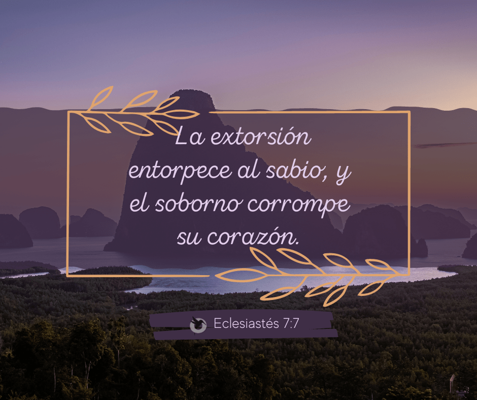 Familia Locales - Regionales Ultimas Noticias La extorsión entorpece al sabio, y el soborno corrompe su... Ecoamazonico 3 septiembre, 2023 Este versículo de Eclesiastés nos advierte de los peligros de la extorsión y el soborno. La extorsión es el acto...