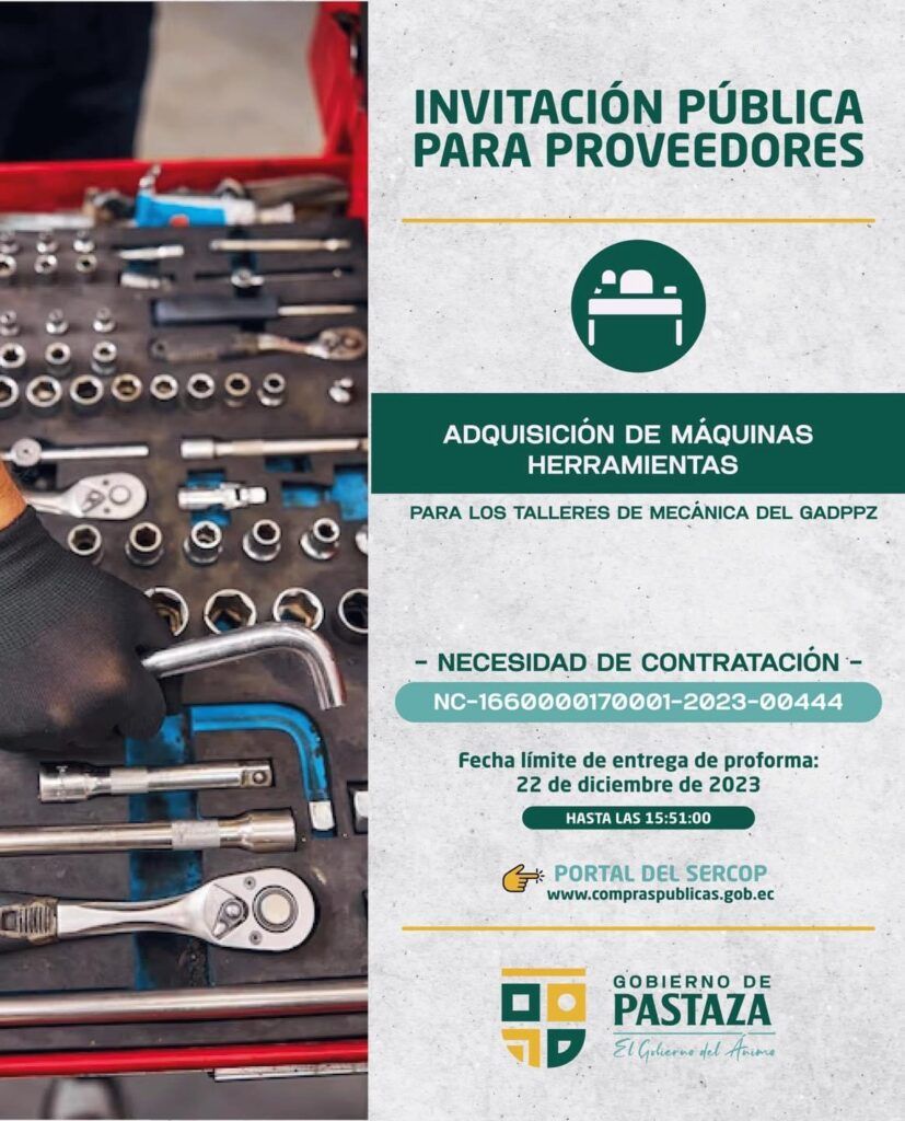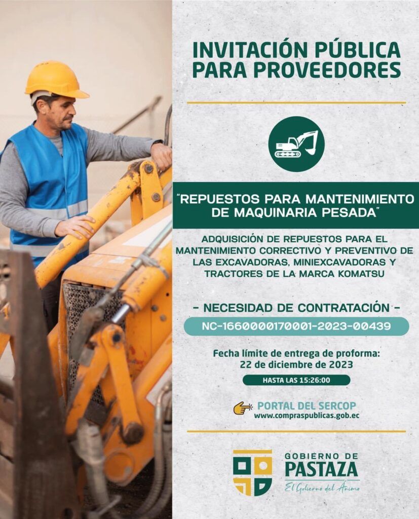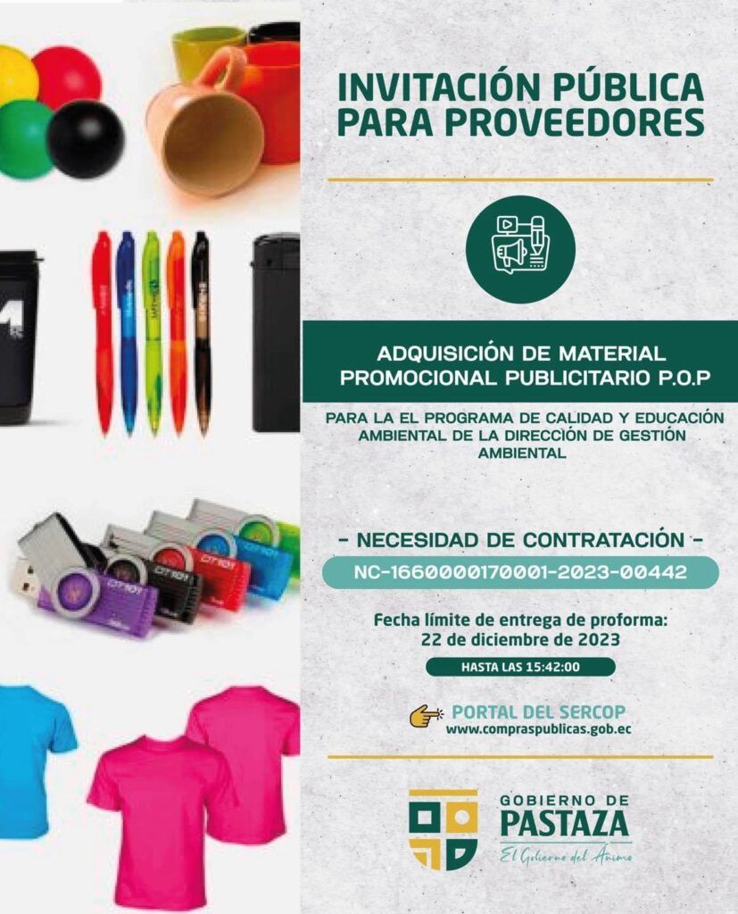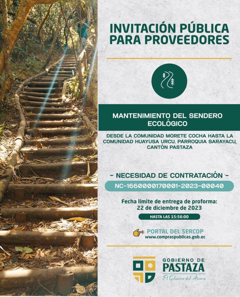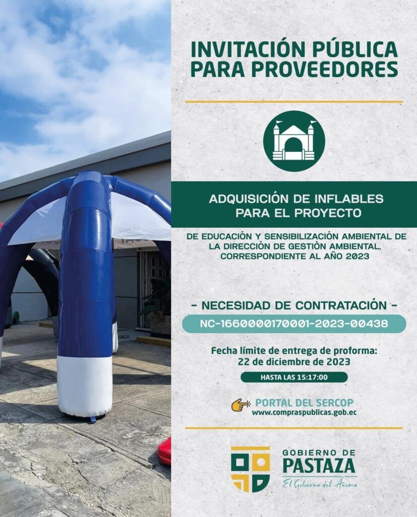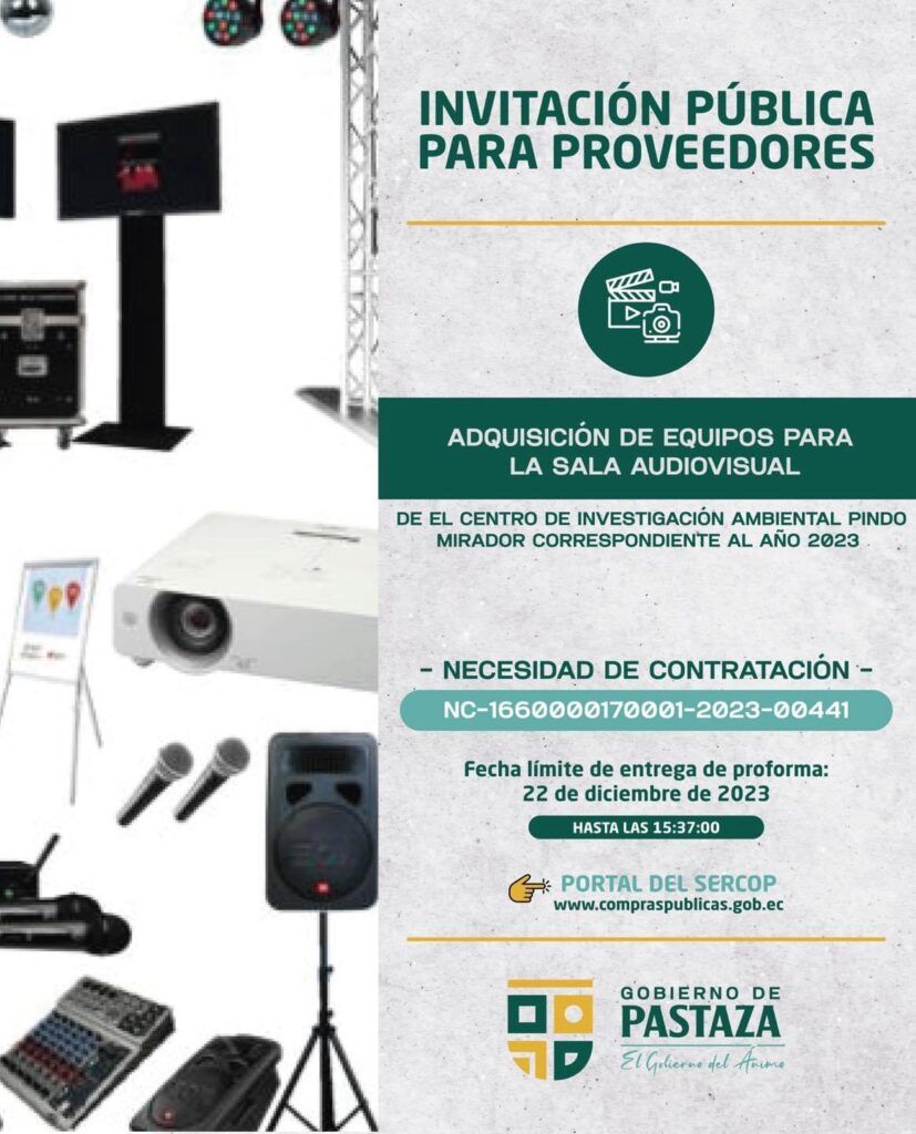 El Gobierno de Pastaza, invita a proveedores a participar de los siguientes procesos, a través del SERCOP👇