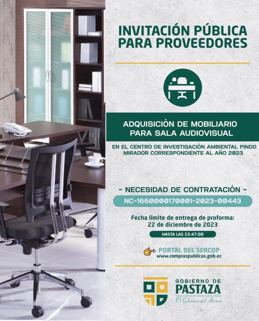 ➡️ ADQUISICIÓN DE MOBILIARIO PARA SALA AUDIOVISUAL EN EL CENTRO DE INVESTIGACIÓN AMBIENTAL PINDO MIRADOR CORRESPONDIENTE AL AÑO 2023