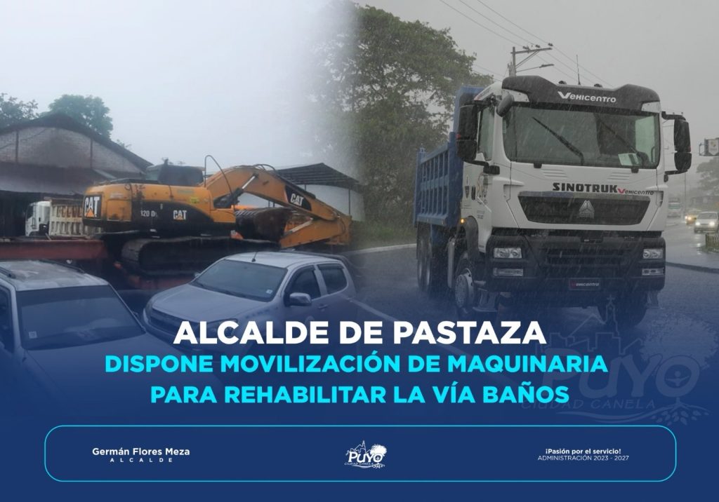 Una excavadora Caterpillar 320 y 3 volquetas pertenecientes a la institución, salieron para la vía Puyo – Baños a brindar apoyo en la emergencia vial que se produjo desde la noche de ayer producto de las fuertes precipitaciones que la zona está soportando.