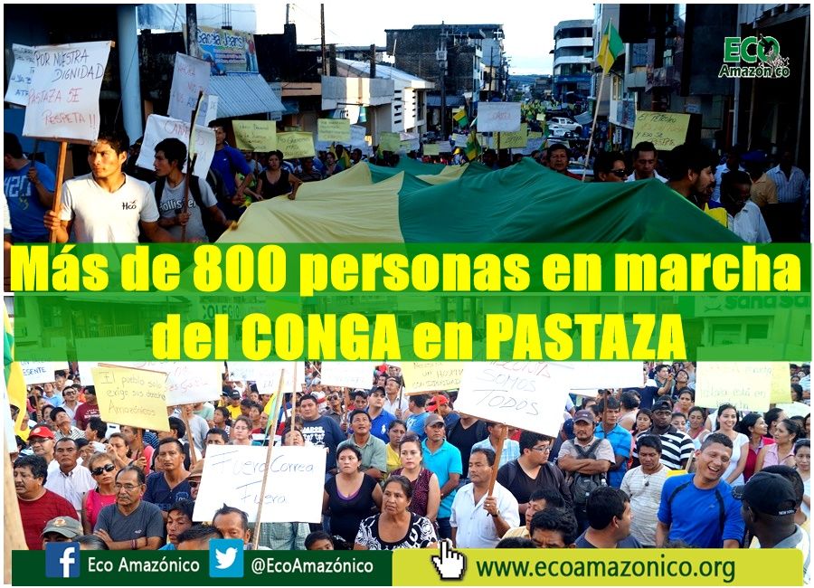 Más de 800 personas se dieron cita en la marcha organizada por el CONGA en la provincia de Pastaza por la reforma a la ley 0-10 que según los Prefectos Amazónicos beneficiará a la región Amazónica .