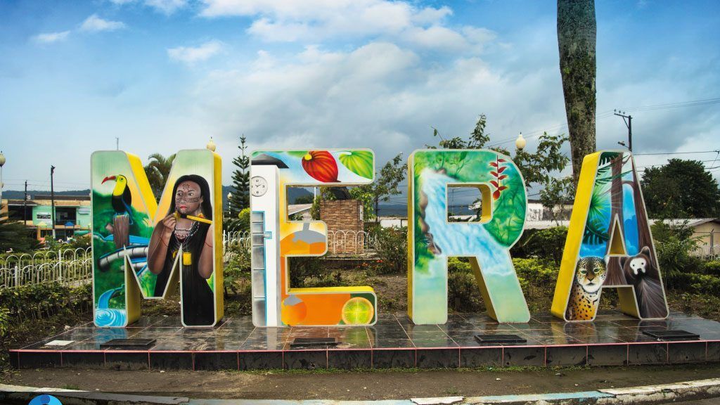 Mera, balcón del Pastaza, cobijo y sustento de mujeres y hombres, valientes campesinos, colonos celadores de la naranjilla, las cavernas, el bosque, la fauna y los ríos. Fuiste grande en las décadas del cincuenta al setenta por tu abundante producción de la “Pepa de oro”, de tus naranjillales, el valor y el coraje de tus hábiles deportistas y la pujanza y tesón de un pueblo que lucha por vencer la soledad y el abandono de sus hijos.Mera decae.- Es el título que Washington Villacrés da para explicar que –el apogeo de Mera concluye con la vida de Mera como parroquia-, toda vez que con la creación del nuevo cantón, la población de Mera decae considerablemente, ya por la plaga que azotó los naranjillales, la llegada de compañías petroleras en busca de petróleo y a enganchar mano de obra, o simplemente porque otros lugares de Pastaza fueron tomando protagonismo.