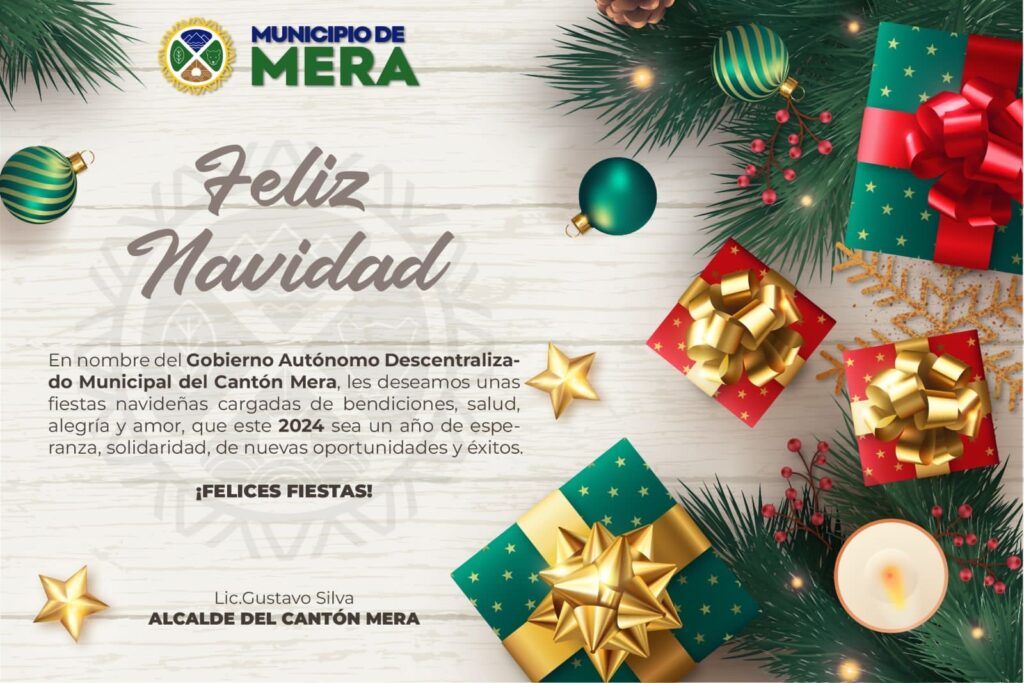 El Municipio de Mera les desea una feliz Navidad que las bendiciones del Todopoderoso llegue a cada hogar del cantón Mera, nuestro compromiso continuar trabajando por nuestra gente 🎊🎁