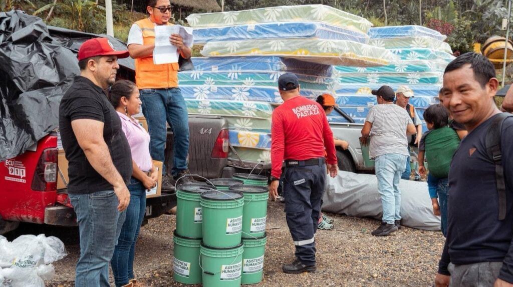 El Gad Municipal del Cantón Pastaza presidido por el alcalde Germán Flores Meza, bajo la coordinación de la Dirección de Gestión Ambiental y Riesgos, conjuntamente con la Secretaría de Gestión de Riesgos y el Cuerpo de Bomberos; atendió las necesidades de 62 familias de 8 comunidades que fueron afectadas por el desbordamiento del Río Oso en la cuenca baja. Con el acompañamiento de la vicealcaldesa Jenny Moncayo se entregaron 87 kits de alimentos, 25 kits de limpieza y aseo personal, 25 kits de cocina familiar por parte del Municipio; mientras que la Secretaría de Riesgos entregó 21 kits de dormir y 10 kits de vajilla.